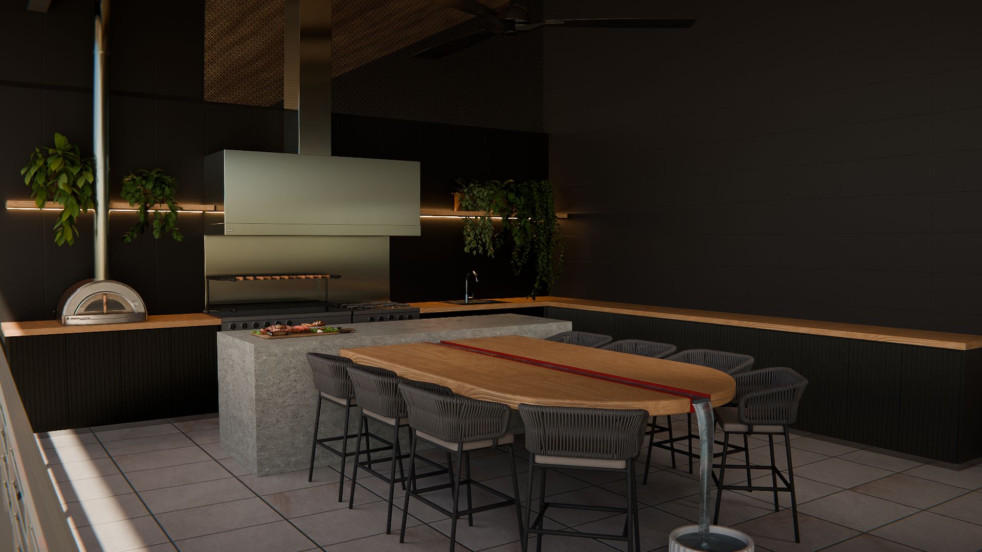 This 8,000-square-foot luxury garage condo fuses NASCAR adrenaline with rock ’n’ roll edge, serving as both a showroom for the owner’s race cars and a sanctuary for his signed instrument collection. Designed for corporate entertaining, it features expansive social areas, multiple baths, a dramatic indoor–outdoor bar, dining room, stage, and a top-level lounge with pool table, listening room, and Murphy bed. A balcony with Brazilian barbecue overlooks the track, while a showstopping carousel car lift—designed like a towering jukebox and visible through a glass floor—delivers vehicles in place of records, anchoring the space as a true performance-driven lifestyle environment.